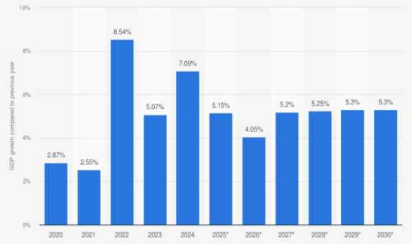 Tốc độ tăng trưởng GDP hàng năm của Việt Nam (2022 ~ 2025)